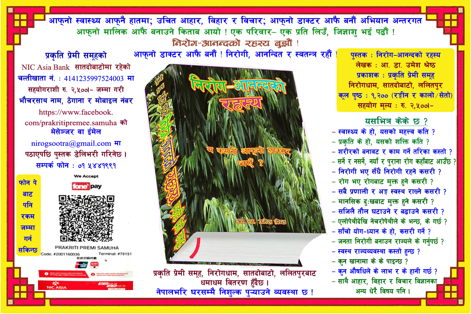 सम्पर्क : ०१ ५४४१९९१, निरोगधाम, सातदोबाटो, ललितपुर