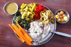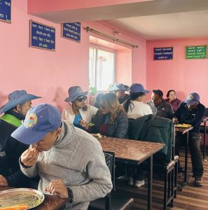 Generally, picnics are understood as occasions to consume oily, spicy, meat-based foods and alcoholic beverages. However, the picnic–hiking held on Magh 17 was special in terms of both diet and purpose. The objective of the picnic was to share yoga and health knowledge and to present a practical example of pure vegetarian, health-promoting food. Such food is not only delicious but also does not make the body feel heavy.