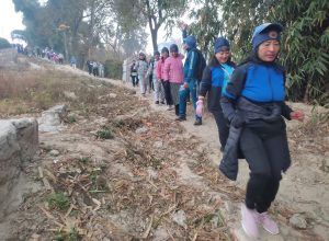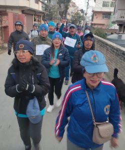 ११ औं राष्ट्रिय योग दिवस साताव्यापी कार्यक्रमअन्तर्गत २०८२ माघ ३ गते बिहान योग तथा स्वास्थ्य चेतना फैलाउने उद्देश्यले सातदोबाटो, निरोगधामदेखि तल्छिखेल, नखीपोट, नख्खु खोला, खोकनादोबाटो, बुङ्गमति, कार्यविनायक, खोकना, भैंसेपाटी, सातदोबाटोसम्म र त्यहाँबाट फेरी सातदोबाटोसम्म १२ किमी प्रभातफेरी (मर्निङ्ग वाक) कार्यक्रम सम्पन्न भयो। प्रकृति प्रेमी समूह, आस्वा आहा योग स्वाध्याय अभियानका अभियन्ता तथा स्वाध्यायार्थीहरु सहभागी सो कार्यक्रममा योग-स्वास्थ्यवर्द्धक नारा तथा गीतले जनसमुदायलाई उचित आहार, विहार र विचार तथा योग अभ्यास गरी निरोगी, आनन्दित र स्वतन्त्र जीवन यापन गर्न सचेत र प्रेरित गरिएको थियो। ऐतिहासिक बस्ति बुन्गमति र खोकना परिक्रमा गर्दा स्थानीय जनता उत्सुकतापूर्वक मुस्कानसहित स्वागत मुद्रामा देखिन्थे। प्रभातफेरीमा सहभागीहरुलाई खोकना योग-व्यायाम स्वाध्यायाशालाका सदस्यहरुले रोज्मेरिको चिया र स्वास्थ्यवर्द्धक आटाको केक नास्ता गराउनु भएको थियो।
